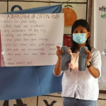 In den vergangenen zwei Wochen haben wir an unseren Standorten Veranstaltungen zur Menstruationshygiene durchgeführt. In den letzten Nähtrainings wurden fleißig Binden genäht, die vor allem den jungen Frauen eine wichtige Hilfe bei der Monatshygiene sind. Sie sind waschbar und wiederverwendbar. In einem Set gibt es neben 8 Binden u.a. auch Unterwäsche, eine Anleitung und Waschpulver. Die kostenlose Verteilung der Beutel mit diesen Utensilien fand großen Anklang bei den Frauen und Mädchen in unseren Projektdörfern.