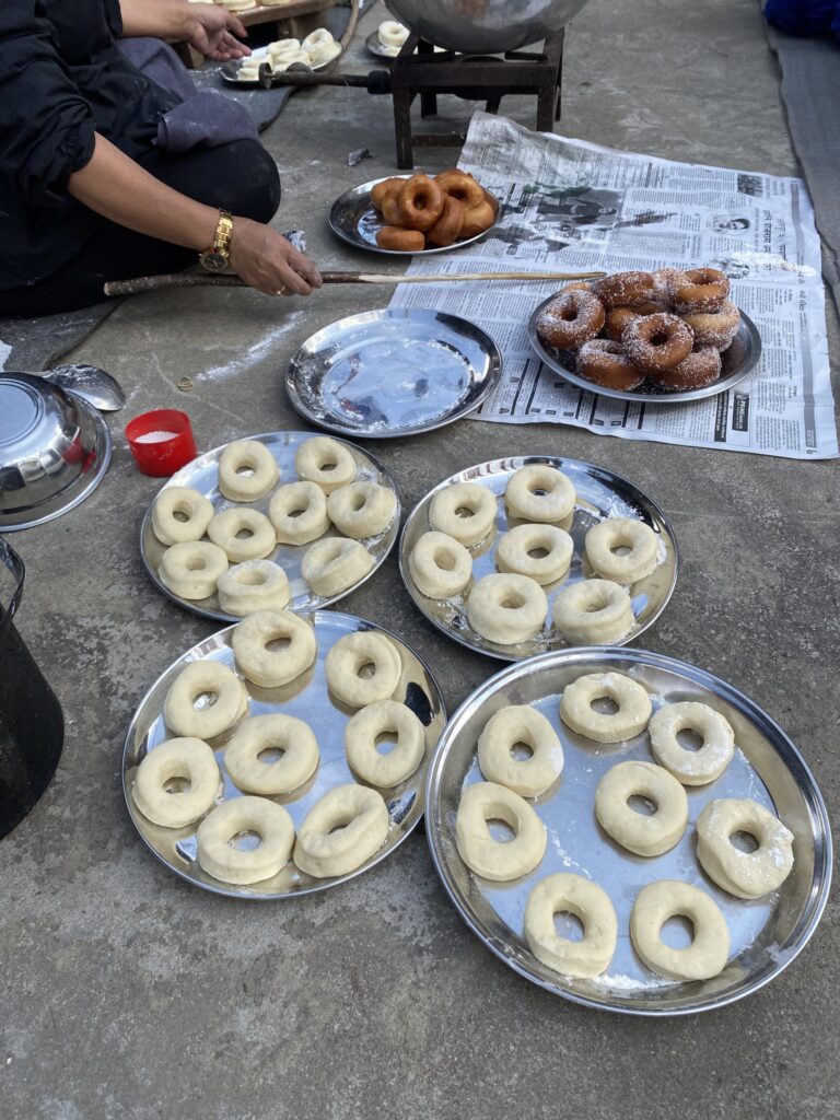 Doughnuts sind in Kimtang sehr beliebt und die Mädchen und Frauen im Dorf wollten lernen, wie man diese Backwaren herstellt. Wir haben 15 Frauen und Mädchen ausgebildet und 10 von ihnen stellen Doughnuts jetzt selbst her und verkaufen sie auf dem örtlichen Markt. Sie freuen sich über ihre neuen Fertigkeiten und die damit erzielten Einnahmen.