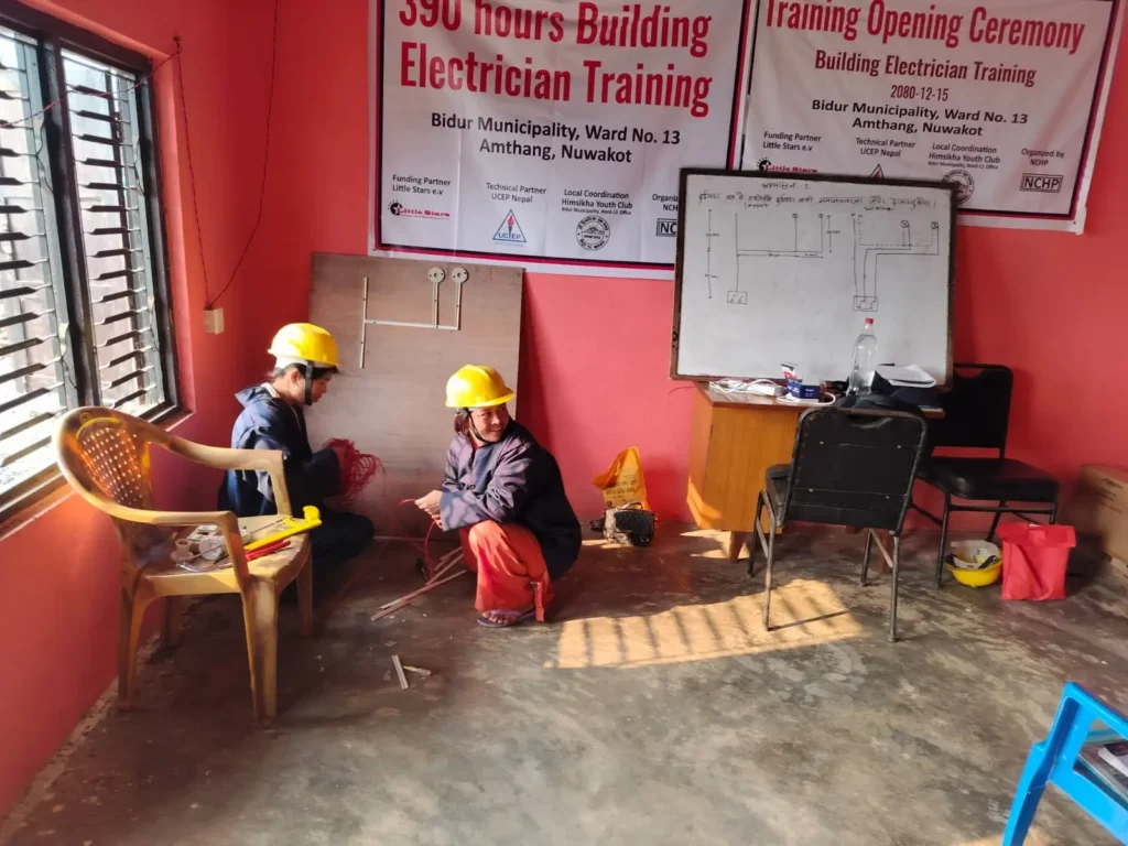 In unserem Projektdorf Amthang hat eine dreimonatige Ausbildung zum Elektriker für Jugendliche begonnen. Ein Teilnehmer aus einem vorherigen Lehrgang in Kimtang hat sich selbständig gemacht und kümmert sich nun um die Elektroinstallation in den Häusern an seinem Wohnort und Umgebung. Damit bestreitet er erfolgreich seinen Lebensunterhalt und den eines weiteren Mitarbeiters. Wir wünschen den Teilnehmern des neuen Lehrgangs viel Erfolg!