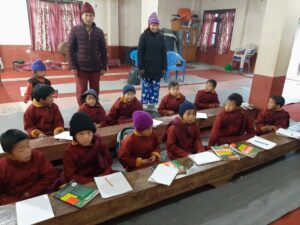 In Kimtang our teachers teach English and Sambhota. This is similar to the Tibetan language and is used for prayer scriptures.